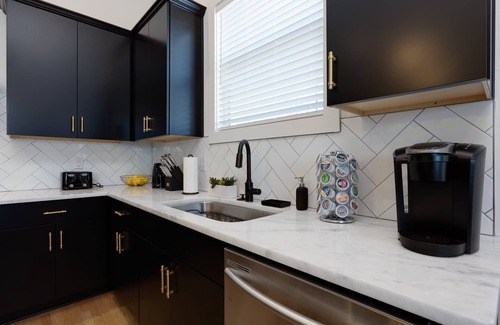 Thoughtfully designed with group travelers in mind, this spacious townhome combines modern style with practical amenities. The open-concept living area is perfect for hanging out or catching a game on the smart TV. Cook meals in the fully stocked kitchen with island seating and a Keurig for morning coffee. Upstairs, the third-floor balcony and wet bar make for the perfect evening hangout. With multiple sleeping areas and bathrooms, everyone in your group gets space and comfort.