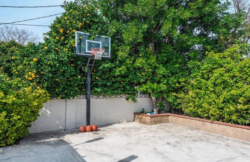 The open living spaces are made for entertaining with a pool table, a fun Insta wall, many board games, a foosball table, and an arcade machine – then step outside into the yard with a huge pool, alfresco dining, a BBQ, and even a basketball court.