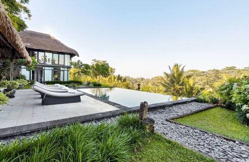 Set in over three hectares, this four bedroom estate rests on the rim of a vast amphitheater of rice paddies cascading down into the deep gorge of the sacred Pakuseba river. Nestled in the Balinese foothills beneath the traditional village of Kelusa. This magical estate lets you experience the authentic Bali without compromising on 21st century comforts. With three separate living areas and two swimming pools, it’s ideal for multi-generation families and groups of friends who like to be together but still have space to spread their wings.