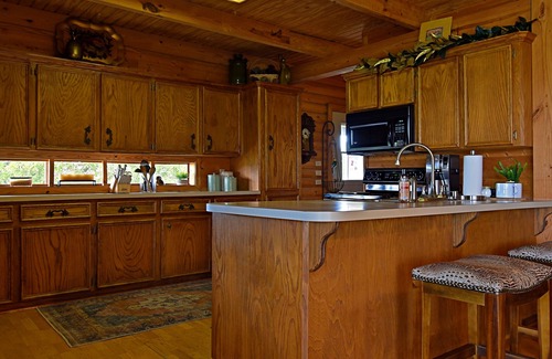 This charming, split level cabin is 3 bedroom 2 bath offers a gorgeous views of hill country. It has hard wood floors throughout an open living space floor plan. The kitchen is well stocked with all appliances, large and small, as well as anything you need to prepare and serve meals during your getaway. There is a small island bar for 2 and a dining table that seats four. The living room has comfortable seating, a smart tv with surround sound, and a Bluetooth stereo.