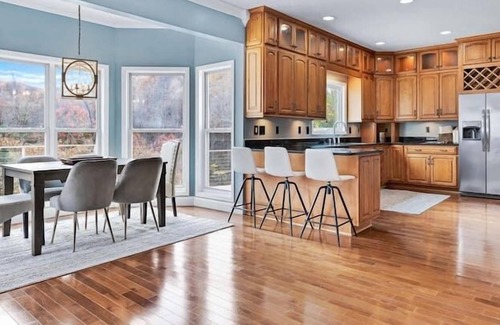 Welcome to your spacious mountain retreat, where vibrant, lush grounds and breathtaking mountain vistas create an idyllic escape for your group of up to 12 guests. Recently updated and thoughtfully furnished with premium decor, this home exudes modern luxury.