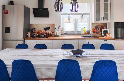 The house welcomes you in the middle of the countryside and is the perfect choice for vacationers looking for a peaceful vacation. The accommodation is modernly furnished and well equipped. After an active day, you can cook together in the kitchen and make yourself comfortable at the long table. Spend a wonderful time in the garden, where your children will find plenty of entertainment. On warm days, you can splash around in the pool and spend summer evenings on the balcony or one of the terraces. There are good fishing opportunities close to the house.