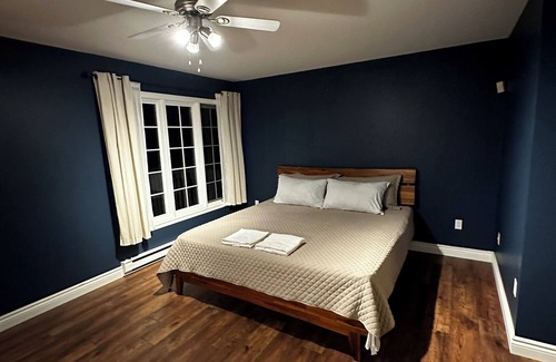 Discover tranquility in our beautiful 5-bedroom, 2-bathroom retreat, ideal for family gatherings or group retreats. Featuring a king-sized bed and four queen beds, step onto the expansive deck for beautiful views of the green belt opening to the trails. Listen to the soothing stream from the kitchen and bedrooms. Centrally located in the city, just a 10-minute drive from downtown, Memorial University, and all St. John’s attractions. Enjoy free parking and seamless check-ins with our smart lock.