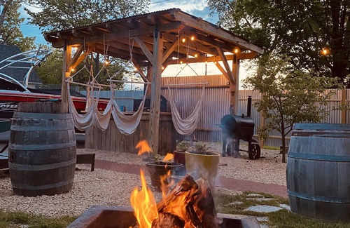 5 bedrooms/4 private suites, each suite has its own private bathroom. 100+ 5 star reviews on VRBO! Fully equipped kitchen and backyard bar with wood fired pizza oven. Key-pad entry, Laundry & WIFI. Cozy Living room with fireplace and a large HD TV. Dog friendly upon approval, no charge for dog. Off-street parking, fire pit with supplied firewood, 2 mountain bikes, 4 kayaks, 2 paddle-boards! Walk to Main Street Hayward in 1.5 blocks. Snowmobile, ATV, Bike, Ski Trails! Sauna rental optional.