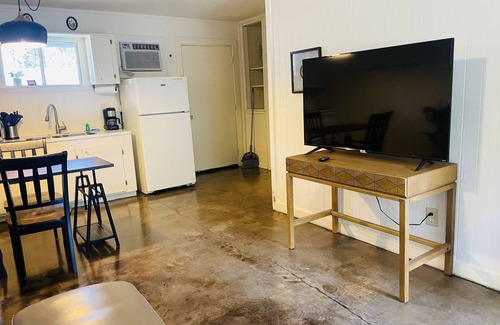 Kick back and relax in this peaceful village of Folsom. Enjoy the quiet slow pace country life. This apartment is 1 of 8 nestled in the woods not far from down town. This complex was renovated in 2020 and features stained concrete floors and a relaxing feel. Youll love the space featuring a kitchen and living area combined with a comfy couch and a separate bedroom. Stroll around town or work from your apartment with the ease of comfort country life.
