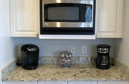 * Large Kitchen with 6 counter stools at kitchen bars and kitchen table with seating for 2, glass cooktop, oven, refrigerator, dishwasher, trash compactor, microwave and is completely equipped for any culinary experience.