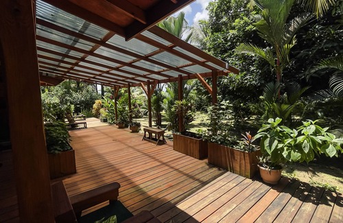5 min Walk to Surf, 3 min Boat Ride to Town: Well-equipped 2BR/1BA Private Apartment on Carenero Island near renowned diving and surfing spots, dining, and tours. Conveniently close to town. Features a spacious terrace with garden and ocean views, both indoor and outdoor dining areas