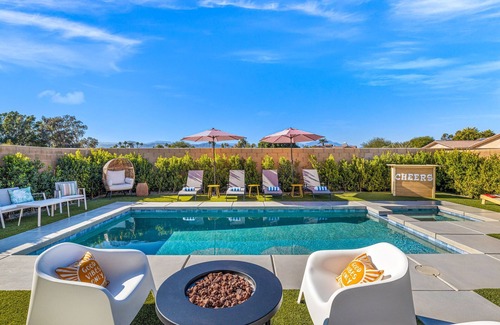 Escape to this stunning 4-bedroom, 2.5-bath desert haven, perfectly designed for relaxation, entertainment, and unforgettable memories—just a short walk to the Coachella and Stagecoach festival grounds. Whether you're visiting for music, sunshine, or a peaceful getaway with friends and family, this upgraded home offers the ideal blend of style, comfort, and convenience.