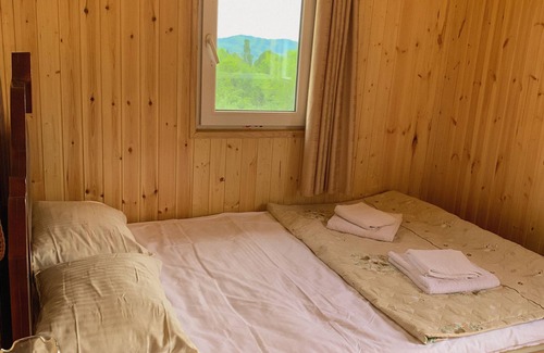 On the side of the road, easy to find. Bursting streams, Sprawling backyard, a great cafe with traditional food, or a path that leads to quiet views of hazelnut plantations and takes you on a stroll by the stream. A large kiwi garden that will impress you, a bonfire area, you can enjoy the local guitar and organize a pleasant evening, grilling barbecues, corn, vegetables. Get a honey extraction master class from the beekeeper, and also get a fruit candy making master class at the neighboring factory. All rooms are quiet, with mountain or garden view. The host is always smiling because he loves to give a warm welcome to his guests. The large park of the historical kingdom, Dadianevi's Palace, is located nearby. playing stadium. The village has particularly clean air, less emissions.
