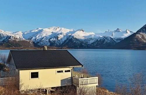 This holiday cottage sits right on the water front by the small town of Sandsletta, on the west side of the island Austvågøya. The landscape is open and sunny and gives a panoramic view of the sea and the mountains. Enjoy sunsets from the terrace. It's especially delightful to sit on the rocks outside the cottage and listen to the waves hitting the beach. During bright spring and summer nights, the landscape will be colored red by the midnight sun. The shallow bay below the house has a narrow stray where the sea water enters. You can catch both salmon and trout in this bay. A motor boat is included and is tied up right by the house. The area has several fishing lakes. The flat landscape is perfect for biking and hiking. 10 km to the foodstore in the fishing village Laukvik. Here you may also walk along the great pier protecting the harbor from stormy weather, and enjoy the fresh and salty sea air from the open ocean. On stormy days, the great weaves hitting the pier are impressive to look at. The town Sand further north has idyllic sandy beaches. The house is a perfect starting point for driving around Lofoten. 25 km to Svolvær, the centre of Lofoten with its shops, restaurants and airport. 30 km to Kabelvåg, where you can have a close up experience with live fish at the town's aquarium. A gallery and museum can also be found here. 17-21 ft boats is available for rent in Laukvik. BOAT ONLY AVAILABLE BETWEEN MAY 5TH AND SEPTEMBER 10TH.
