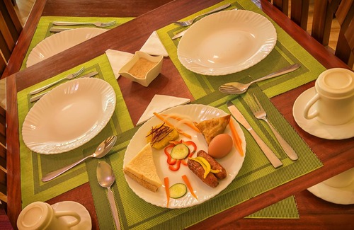 This is an en-suite hotel room with a full private bath and toilet. The room has a private entrance as well. In the room there is a Large queen-sized bed complete with linen and toiletries. Daily housekeeping is provided at no extra cost. There is also a restaurant to cater for our guests. Room service is also available at a surcharge.