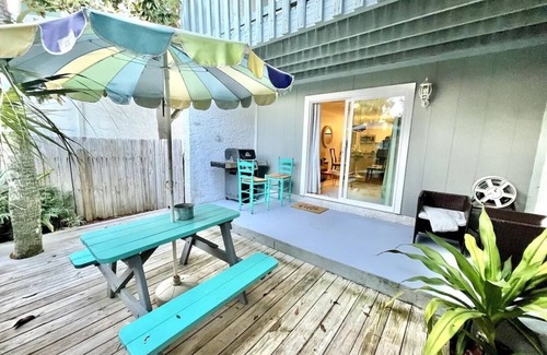 Forget your worries in this spacious and serene space. Escape life's troubles and find freedom at Liberty Beach where life is carefree. Situated just 50 steps to the beach, this 2-bedroom townhouse can comfortably accommodate up to eight (8) guests. Bask in the sun at the backyard picnic table while grilling your fresh catch for lunch. Also, both bedrooms have balconies for the quieter moments in the evening or as the sun rises. Just walking distance to restaurants, mini-golf, and much more!