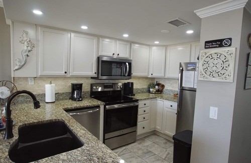 The kitchen is fully-equipped with all of the conveniences you would ever need on vacation. A washer and dryer are also provided for your laundry needs.