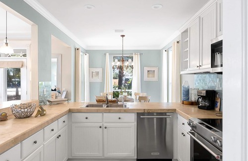 At the end of a quiet cul-de-sac in Seacrest, Dare to Dream makes vacation life easy, especially when the private beach is just a 59-second golf cart ride away (yes, someone timed it).
