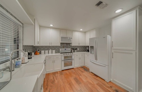 Welcome to your home away from home! Perfect for groups of 16 people, this charming vacation home features 5 bedrooms, 3 bathrooms, and a backyard pool oasis. Immaculately designed with your comfort in mind, this place’s bright kitchen, cozy living room, and comfortable bedrooms are sure to impress. Conveniently located only minutes to some of Dallas’ best restaurants, what more could one ask for?