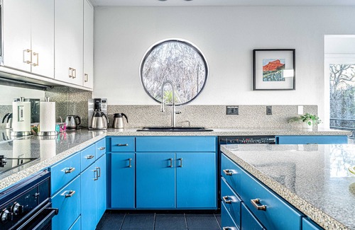 Inside, the home is spacious and airy, ideal for hosting get-togethers with friends and family. On cozy nights, gather in the living room for a movie night, while steps away, the fully stocked kitchen awaits to meet your every need from morning coffee to a delicious gourmet dinner. The unique design of this home, with winding staircases and relaxing spaces tucked into each level, provides your group with plenty of space to spread out and unwind.