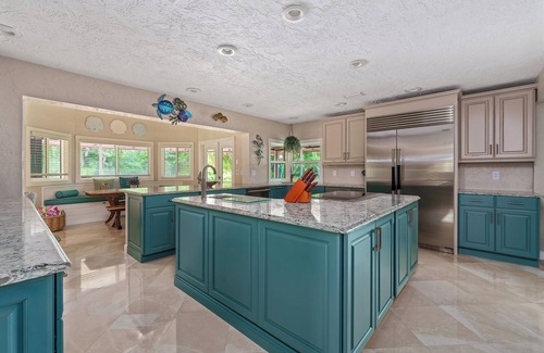 Additionally, our kitchen boasts a marble countertop island, with barstools and a bright breakfast room overlooking the lanai. The spacious dining room with 12 seating, flows seamlessly into the kitchen and family room, creating an ideal space for your families entertaining.