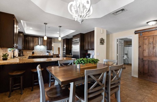 Welcome to Sunny Mesa, Arizona! This spacious, family-friendly 1-story home (3,927 sq ft) has plenty of room for everyone to spread out while also making memories together. The resort-style backyard is everyone’s dream and has so much to experience. A playground for the kids to entertain themselves and have hours of fun while the adults lounge by the pool to soak up some sun. Get everyone together for an afternoon BBQ with swimming and group time on the menu. Sore from hiking? The hot tub will be sure to help loosen those tight muscles.