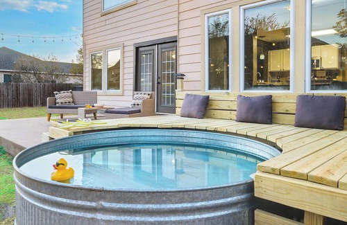 5BR Retreat: Arcade, Cowboy Pool & Volleyball Oasis in Huge Backyard is located in Round Rock. 5BR Retreat: Arcade, Cowboy Pool & Volleyball Oasis in Huge Backyard provides accommodation, featuring Pet Friendly, Sports/Activities, Barbecue/Outdoor Cooking, among other amenities. This House features Pet Friendly, Sports/Activities, Barbecue/Outdoor Cooking, to make your stay a comfortable one.