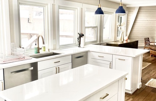 6 dedicated off-street parking spaces, 25-foot high vaulted ceiling in the upstairs living room (conveys a unique spacious feeling), powder bathroom, new washer & dryer, 3 tv’s with Xfinity cable service (the living room tv is a 55”), WiFi, games for kids and adults, google mini to play music and outdoor gas grill. In case you can’t fully get away, there are two desks located in the upper unit and two in the lower unit and if you want to get your PELOTON workout in, we've got you covered.