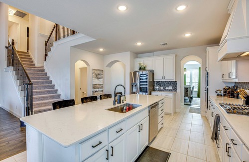 Unwind in style at this upscale vacation rental in Frisco, TX! Ideal for large groups, this 4-bedroom, 3.5-bath home provides a well-appointed retreat with plenty of space to relax. Spend a sunny day on the water at Lake Lewisville or stroll along the community lake trail just steps from your front door! Later, you can sit back on the patio, grill up a BBQ feast, or get cozy inside with your favorite shows on the Smart TV.