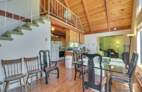 Set on 14 acres of private meadows, forest, and trails, this 1-bedroom plus loft, 1.5-bath vacation rental offers an amazing backdrop for your next Yosemite getaway. This charming A-frame features floor-to-ceiling windows, comfortable furnishings, a fully equipped kitchen, and easy access to the majestic Yosemite National Park. Be sure to visit Yosemite for outdoor adventures and return to your Groveland home-away-from-home for a relaxing night spent on the deck.