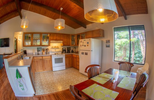 6 mins from Nat'l Park! Enjoy the sound of rain & birds in a peaceful retreat has 2 Bedrooms , 1 Bathroom, and max occupancy of 5 people. The minimum rental for this property is 1 nights, but this can change depending on the season you plan on staying. Previous guests have given good rated it, and VRBO labeled it a top-rated House because of the excellent services rendered by the owner or manager of this House, and has consistently provided great experiences for their guests. Most families or guests that use it recommend it to their friends and some of them are repeat guests. House has a friendly neighborhood, and the Volcano has interesting places to visit. If you want to learn more about the House in Volcano, such as places to visit and things to do nearby, you can check below to learn more.