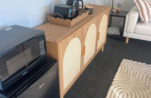 This modern hideaway features a comfortable queen bedroom, a cozy lounge area that gets all day sun, perfect for relaxing after a day of adventure, and a tea and coffee station to start your mornings right. There is also a microwave, toaster, kettle and small fridge for your use. The contemporary bathroom is sleek and fresh, designed with comfort in mind. Enjoy the privacy of your own entrance, making this the ideal space for couples, solo travelers, or anyone seeking a relaxing Queenstown getaway with a touch of style.