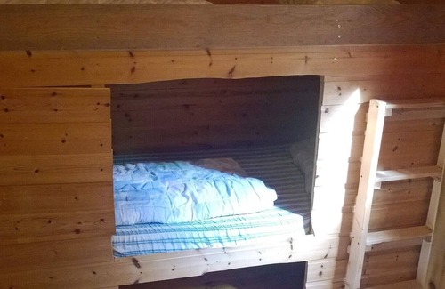 Layout: open kitchen(cooker(2 ring stoves), coffee machine(filter), fridge, freezer(200-249L), tumble dryer(shared with other guests), washing machine(shared with other guests)), Living/bed room(18 m2)(TV(antenna)), bedroom(4x bunk bed), bedroom(2x bunk bed), bathroom(washbasin, shower, toilet), heating(electric), fish cleaning table