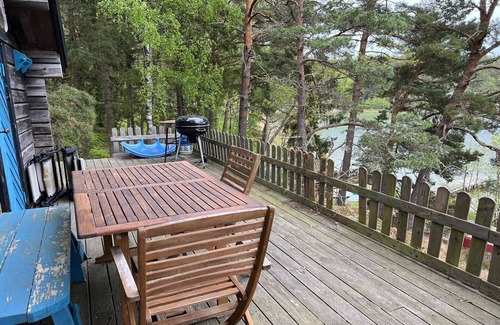 This magical location is hard to beat if you want to experience real archipelago life! Here you live close to the sea, in the house on the mountain, it's just the stairs down to the jetties. Up here there is a terrace with a grill and cozy fire, a kitchen and a built-in family bunk bed with a wider underbed. There is also an outdoor shower on the terrace. If you go a little further out by the water there is a lovely large electric sauna with a shower and your own jetty. If you go the other way there is a fine-grained shallow sandy beach with a barbecue area and table. The beach belongs to the residents on the cape. Since the entire plot is mountain there is no water toilet, the toilet is a dry toilet with a view of the water, cozy. The rent includes a rowing boat, there are several shallows within rowing distance, so you can fish for dinner yourself. If you don't get any, you can row to the fisherman who sells freshly caught fish, both fresh and smoked. If you walk 300 meters on forest paths from the house, an archipelago boat goes to Dalarö, among other places, if you want to go shopping or discover other islands, but if you come by car, you will be picked up by boat by the owner. There are nice walking paths on the island for those of you who want to get around on foot. Living here is simple, but fantastic!
