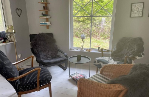 This cottage is located on a large lovely plot and the first thing you meet out of is the generous terrace where you can spend long sunny days either in the hammock in the shade or in a sun lounger. Inside the cottage there is a bedroom with a double bed and a bunk bed. You have a large airy living room with a dining area with high ceilings. There is also a spacious sofa bed for two people, TV and an entire shelf filled with various board games. The cottage is without visibility from neighbors but you have a road ahead. There are fences and gates facing the road. If you cross the road, you come after 800 meters down to the sea and a very charming place called Bökevik. You can swim here, but there are also other bathing places nearby in Vieryd. The nearest town is Ronneby. Ronneby is a beautiful city with shopping and nice parks. There is also a Ronneby well with a spa and adventure pool. Here you can also take a ferry over to Karön, which is a popular tourist destination. If you want to go on an excursion, the archipelago traffic is only a 10 minute drive away. Here you can island-hover from island to island. From Järnavik, for example, you can take the ferry to beautiful Tjärö. At Eriksberg Hotel & Nature Reserv you can take your own car on a game safari. Blekinge thrives on local food producers and places to visit. Visit farm shops, cafes and restaurants that have the greatest respect for our present. If you want to stay out in nature, there is a whole network of trails for cycling, kayaking and hiking with the app that helps you navigate correctly. Warm welcome!