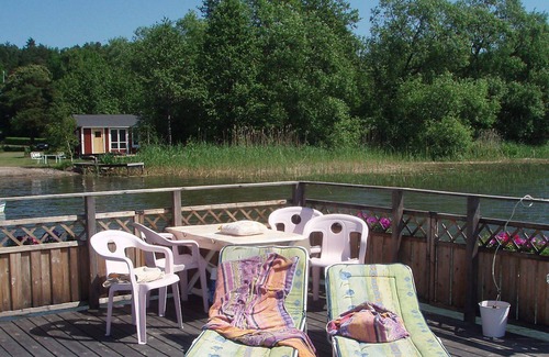 A grand and lovely holiday home located on the island of Svartsjölandet, which lies approximately 20km away from the heart of Stockholm. The huge and fine lawn is just next to a private shallow beach with bridge and boat. The holiday home has a bright and spicy living area with a modern furnishing. On the ground floor there are two bedrooms and a living room with big window section and with a lovely view over the lake and Ekerö. There is also a dining area, hallway, sauna and an open kitchen area. The upper floor is an open area with loft style. The holiday home has a large furnished terrace which is perfect for lovely barbecues, where you can enjoy the beautiful view over the lake and beach. Where you will find fine bathing and fishing opportunities, and if you only want to enjoy the moment you can find peace and relaxation at the furnished pier at the beach. The surrounding area is calm and perfect for pleasant boat trips. Just a few km away you can find some of the best golf courses in the whole of Sweden. There is a riding school located about 1km away from the holiday home. During the winter period there is opportunity to go skating and skiing. There is a cross country ski trail as well ski slope with lift, not far away from the holiday home. The grund is joint, but separate.