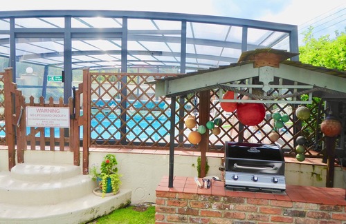 In the front garden, there is a Gazebo dining area, Loungers,Barbecue and childrens play area, an ideal place to relax while the family are enjoying themselves and you can relax with a good book and a glass of wine !