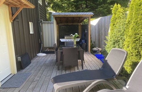 This 2 bedroom cabin has a well equipped kitchen and private deck with patio furniture, propane BBQ and outdoor shower. Both bedrooms feature comfortable queen size beds with soft sheets and duvets and black out blinds. The custom bathroom features a bathtub/ shower combination. There is a comfortable three seat couch and bar area for working or eating. The cabin is small so is better suited for two or three guests if the weather is inclement. The outdoor hot tub is the perfect spot to relax and rejuvenate after an adventurous day exploring the local attractions. For those unexpected power outages, 60 Steps has a backup power source to make your stay more comfortable. Not suitable for young children. No pets permitted, owner lives on site. If you wish to entertain friends or family during your stay this cabin is not suitable as it is intended for a maximum of four guests.