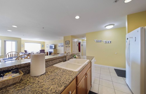 This comfortable, well appointed condo is great for families looking for a little extra space. Facing west, the large picture window brings in abundant natural light and amazing ocean sunsets. Settle into the ample living room seating for a movie on the flat-screen TV or enjoy a night with family playing games on the large dining room table. The open floor plan allows for everyone to be doing their own thing while still being together.
