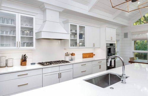 The home offers four king bedrooms, three with ensuite bathrooms and one with a Jack-and-Jill bathroom shared with a double queen room. A fun built-in bunk room with a twin bed over a queen makes this beach house kid-friendly. All bedrooms have their own TV.