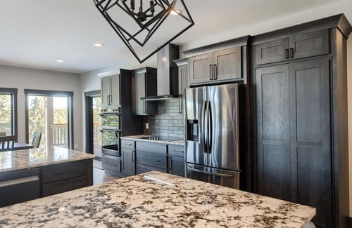 Ultimate Convenience: The paved driveway great for truck and trailer parking along with a spacious 3-stall heated garage ensure hassle-free parking for your entire group. No need to worry about cramped parking spaces or long walks to your accommodations. There's also a spacious kitchen with seating for up to 34 total, with 3 full sized fridges! There's also an 86" TV Theater along with a foosball and pool table right there at the property for your ultimate vacation experience!