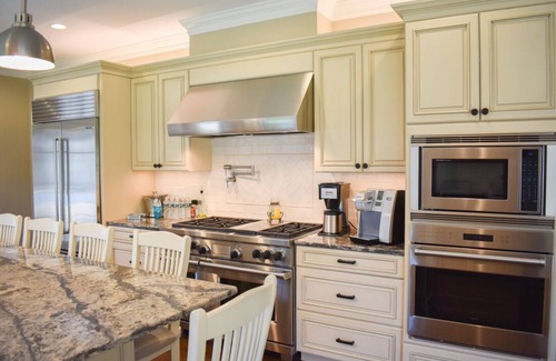 The expansive layout gives you the hosting ability for a multi generational stay with room to spare! The main level of the home boasts an beautifully designed kitchen that perfectly flows into the elegant dining room. From here you will find one of the three living areas that overlooks the lush lawn. The light and bright master bedroom with king bed will have a full size master bathroom with walk in shower and direct access to the backyard.