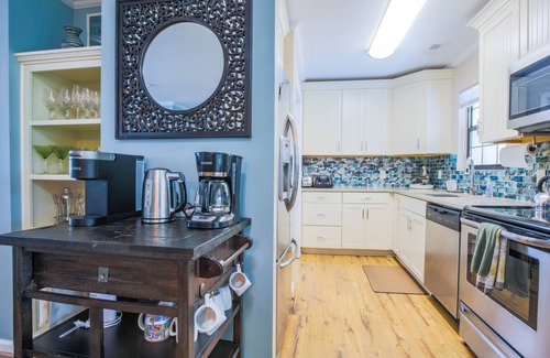 Love the beach but want to get away from it all, too? You will love Mermaid's Folly, which is a short walk from the beach and provides a quiet & peaceful retreat within the sun-drenched, bird-filled woods. Located on a low traffic street in a tree-filled residential neighborhood, this house provides its guests close proximity to the beach and Folly Beach's restaurant row on Center Street without all the congestion and noise that you'll find on the busier streets of the island. Guests of Mermaid's Folly can take a leisurely walk to the best public access point (fully equipped with its own bath house & rest room!) on Folly Beach and have their toes in the sand within 7 minutes of leaving the front door. At the end of the day, you can return home to enjoy sundowner cocktails on one of the home's three elevated porches that overlook the marsh or drive to downtown Charleston to enjoy the fabulous foodie & cultural delights of what readers of Southern Living magazine voted as the "Best City in the South" of 2017.