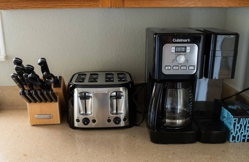 Our home features two comfortable bedrooms. The first bedroom boasts a king bed and a smart TV for your entertainment. The second bedroom includes a queen bed and a bunk bed with two twin beds, perfect for families or groups.