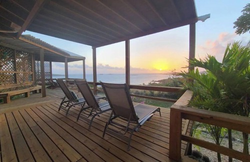 Second, because the Casa is situated on one of the higher bluffs of the island, it is exposed to the warm and gentle Eastern Trade Winds which provide some important benefits. Most importantly, Casa Marbella is virtually mosquito free! Biting insects such as mosquitos and No-See-Ums can be quite a nuisance in and around houses with lower wind exposure. Thankfully, the Trade Winds keep these flying nuisances out, all while providing a cooling balsam after a sunny day at the beach. Also, the near-constant breeze makes even the hottest island days pleasurable. And at night, for your convenience, we have recently installed state of the art AC units in every bedroom. While everybody else is sweating, you can be on Casa Marbella’s ocean-view main deck, where you can sip on a cool beverage while enjoying stunning views of St. Thomas, BVI, Culebrita, and Cayo Norte, along with the ships passing through the channel. And let’s not forget the breath-taking twilight scenes and sunrises! In fact, the deck is so nice that, according to rumor, while Casa Marbella is vacant, we have our neighbors come up in the evening for the view and the breeze, watching cruisers passing by, the moon rise, and the hypnotic light of the Culebrita lighthouse. Finally, the property consists of three separate buildings connected with wooden walkways and decks. There is a Master bedroom located on the easternmost part of the property, just next to it there is a living room with kitchen, and to the west of it there is another building where two guest bedrooms and a full bath are located. This arrangement allows for a great deal of privacy for all guests. You will find a spot where you will be able to relax in privacy. We hope that you can experience this unforgettable experience for yourself.