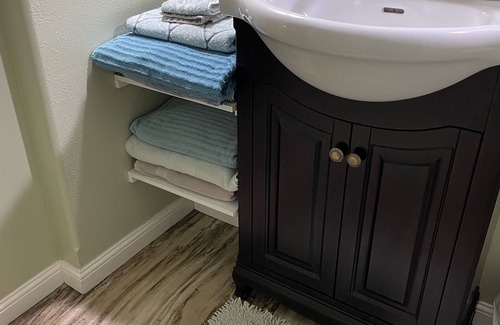 This is not a rental of the entire house- it is a large room in a basement with 2 beds. Basement with two queen beds. Private bathroom. Access to laundry room. TV. Owners live upstairs. Separate entrance to basement.Nothing fancy but clean and quiet. Internet. Microwave, coffee pot and full refrigerator. There is no cook stove.