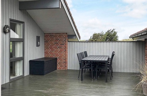 Large and spacious holiday cottage located in the southern part of Løkken approx. 3000 m from the town. No letting to youth and builder groups. The house has been modernised and maintained and features an open-plan kitchen and living room, four bedrooms (one in the annex), mezzanine, bathroom with underfloor-heating, guest toilet and open terrace facing south and a sheltered patio between the house and annex. The living room has an air-to-air heat pump that, along with the wood-burning stove, quickly and inexpensively heats the entire house. The decor is personal, Danish cottage style, tasteful and of good quality. There are, Nintendo Wii and PlayStation3. The south-facing patio between the house and the annex is the perfect place on warm summer days - sheltered from the wind and completely undisturbed surroundings in magnificent surroundings. The plot is slightly hilly dune plot, from where you can hear the ocean roar.A refundable deposit might be charged closer to your check-in date. The security deposit ensures a smooth stay and covers any additional services or consumption charges.This deposit covers utilities consumed during your stay and any additional services that may be taken.The final amount will be adjusted based on actual meter readings, actual usage of extra services, and any remaining balance will be refunded within 21 days after checkout.This deposit simply acts as a prepayment for charges that you would anyways pay for, ensuring a seamless stay and check-out experience.