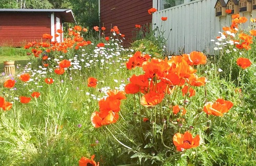 Welcome to a red house with white knots, classic true style from Småland. The house is located near Lake Nömmen where there is a swimming area and fishing for those who want. A fishing license is required and can be purchased at the nearest store. If you want to swim at a larger municipal swimming area, Stensjön is recommended, which is not far from your accommodation. At the end of the road and in the middle of a beautiful garden is the cottage. The farm is fenced and surrounded by forest and fields. Forest that is rich in mushrooms and berries. Wi-fi is included as well as free parking, carport with charging station for electric cars. Pets are welcome at no extra charge. You are close to Lake Nömmen, one of Jönköping County's larger lakes. There is a swimming area and the opportunity to fish. You can often see deer, cranes and foxes, sometimes even moose, roaming past the cottage. With a canoe or kayak you can experience Nömmen or one of the many lakes nearby. Here you will find peace and quiet with only a few neighbors. There are many excursion destinations and the cottage is perfectly located between the towns of Eksjö, Nässjö, Sävsjö and Vetlanda. In addition, only 50 minutes from the larger city of Jönköping. Astrid Lindgren's World is a day trip away. 15 minutes to Lövhult nature reserve with beautiful nature trails. Hestra, which has summer activities suitable for adults and children, can be visited in one day. The cottage is 60m2 large and has an open plan layout, with a modern kitchen area including a dishwasher, induction hob and self-cleaning oven. The living area has a spacious dining area, comfortable sofa and stove. Firewood is available in limited quantities. You can watch TV via chromecast. There are two bedrooms, one with a double bed and large wardrobe and a single room with a wardrobe. Bathroom with shower and washing machine. There is also a guest cottage with space for two. Each bed is equipped with a down duvet and down pillow. The guest is responsible for sheets and towels From the kitchen area of the cottage you can access a 50 m² veranda. Roof over the entire area and partially glazed. The house is in a sunny position all day. If you are looking for shade, there is a pergola in the garden available. The garden is carefully and beautifully landscaped. An oasis with, among other things, a pond with goldfish and rippling water. Smoke detectors and fire extinguishers are in the house.\ A warm welcome. Good to know Unfortunately, cleaning cannot be purchased. The cottage must be cleaned by the guest before departure. Cleaning supplies and instructions are available on site. Own bed linen and towels are provided.