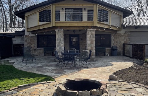 Enjoy some time away with your family in this quiet, rustic and spacious home, just minutes from 7-Springs. This newly remodeled, exposed beam rustic cabin with vintage charm is located 6 miles from 7-Springs Resort and close to Hidden Valley. Gather the family around one of three fireplaces, enjoy baking cookies in the large kitchen, and let your dogs out to play in the large yard. Three bedrooms upstairs with several beds or pull outs, along with couches and a bed on the bottom floor. Rustic, older home with recent upgrades throughout and lots of room to relax inside and out.