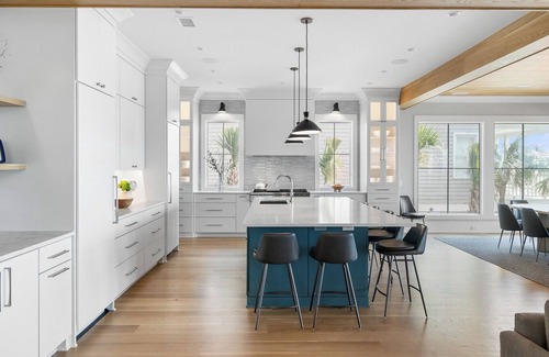 Sun, sand, and wellness collide at Stay Salty—a brand-new, oceanfront retreat on Isle of Palms where modern luxury meets intentional, healthy living. With six bedrooms (including 5 California King beds), six full bathrooms, and a powder room, this 6,000+ square foot estate was custom built to deliver effortless comfort, elevated design, and a coastal experience unlike any other.