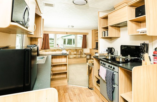 As with all our caravans, your kitchen comes complete with a 40 piece dining set, air fryer, and slow cooker.