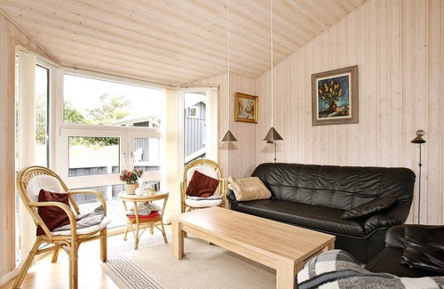 Well maintained holiday cottage located on a large plot with room for many outdoor activities. The house is comfortably furnished and features a whirlpool and a sauna. The house is approx. 400 m from the beach where you will find a jetty. Close to large playground with a playing field. No letting to youth groups.