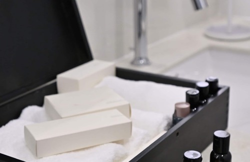 While you're here, you can enjoy all the comforts of home and more, including WiFi and a bidet, as well as air conditioning and an ironing board. Other amenities include towels, soap, toilet paper, and a hair dryer.