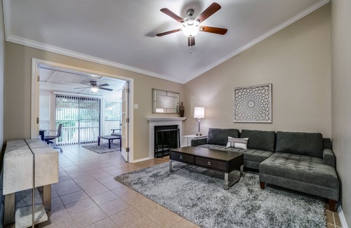 Northwest location. Charming 2/2/2 fully furnished duplex conveniently located off IH-10 near the Medical Center, USAA, UTSA, and Fiesta Texas as well as major upscale restaurants and shopping. Main living area has a large flat screen TV. Both bathrooms feature tub/shower combinations with large vanities. There is a washer and dryer located in the attached double car garage. Security cameras and motion-sensor lighting installed provide additional peace of mind.